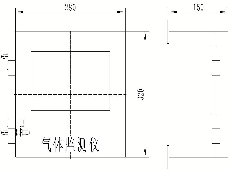 氣體監測儀主機為不銹鋼壁掛箱體,帶透明玻璃視窗,箱體尺寸預計為:280*320*150mm(長*高*厚)。箱體為鉸鏈式前蓋開門結構,帶有小門鎖。