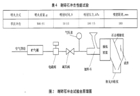 耐碎石沖擊性能檢測在專用試驗裝置上進行,見下圖。試驗對象為散熱器芯子部分,連續噴射,一般只噴射一次。鋼丸硬度為61HRCH~65HRC,徑直4mm~5mm。試驗后再按氣密性規定進行密封性能檢測。